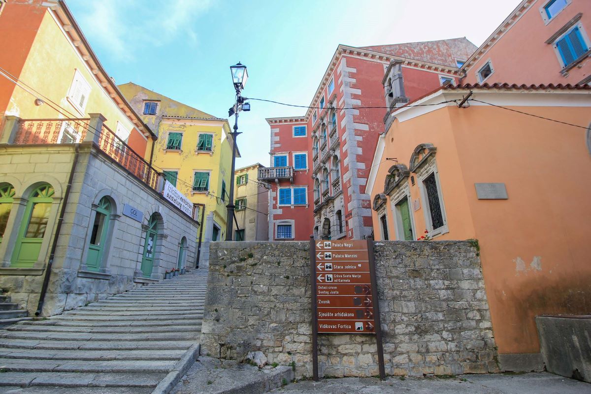 Grožnjan, ein bezauberndes Dorf in Istrien, lockt mit einer reichen kulturellen Szene und einem atemberaubenden Panorama. Zahlreiche Galerien und Ateliers lokaler und internationaler Künstler machen Grožnjan zu einem wichtigen Kunstzentrum des Landes. Der historische Charme der Stadt wird zudem durch die gut erhaltene mittelalterliche Architektur der Altstadt mit ihren engen Gassen und steinernen Gebäuden geprägt. Aber es gibt noch mehr! Dank seiner erhöhten Lage bietet Grožnjan spektakuläre Panoramablicke auf Olivenhaine, Weinberge und die Adria. Viele kommen extra für einen Tagesausflug, um in die köstliche istrische Küche in den lokalen Restaurants und Tavernen genießen zu können. Die entspannte und ruhige Atmosphäre macht Grožnjan zu einem idealen Rückzugsort für Reisende, die die Schönheit Istriens in all ihren Facetten erleben möchten.